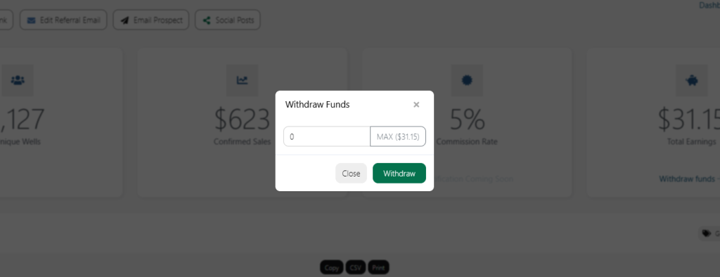 - Click Withdraw Commission.